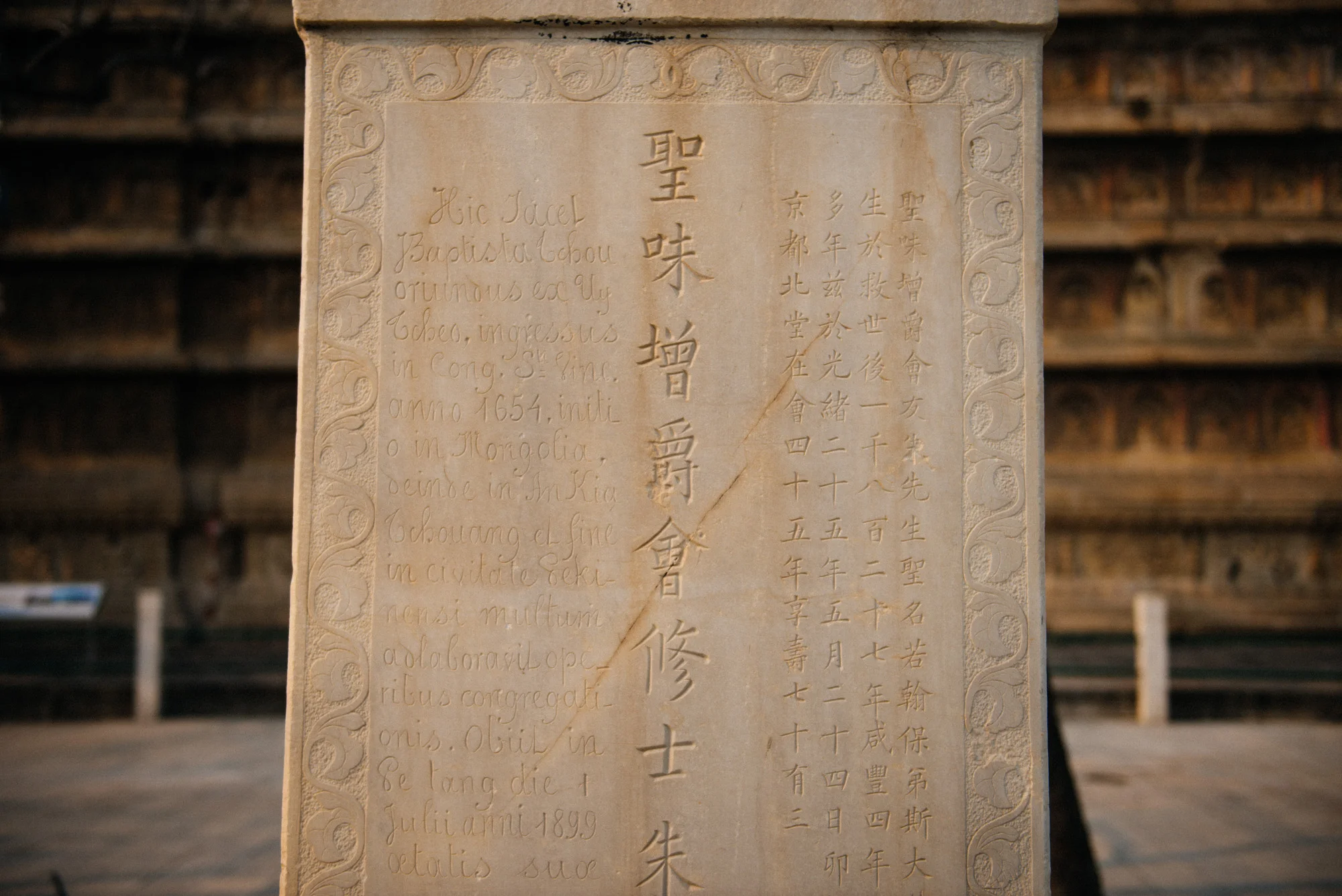 On the right side of the temple many gravestones of catholic priests stand with inscriptions in both Latin and Chinese. I assume that these are reminiscent of the Zhalan Cemetery that was close by and was destroyed during the Boxers Rebellion.