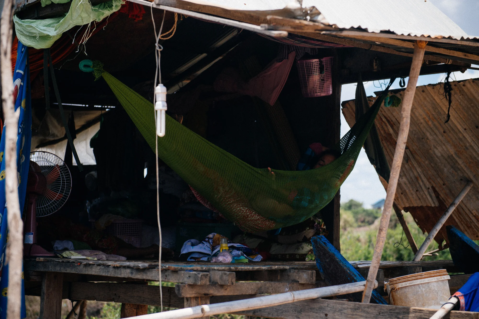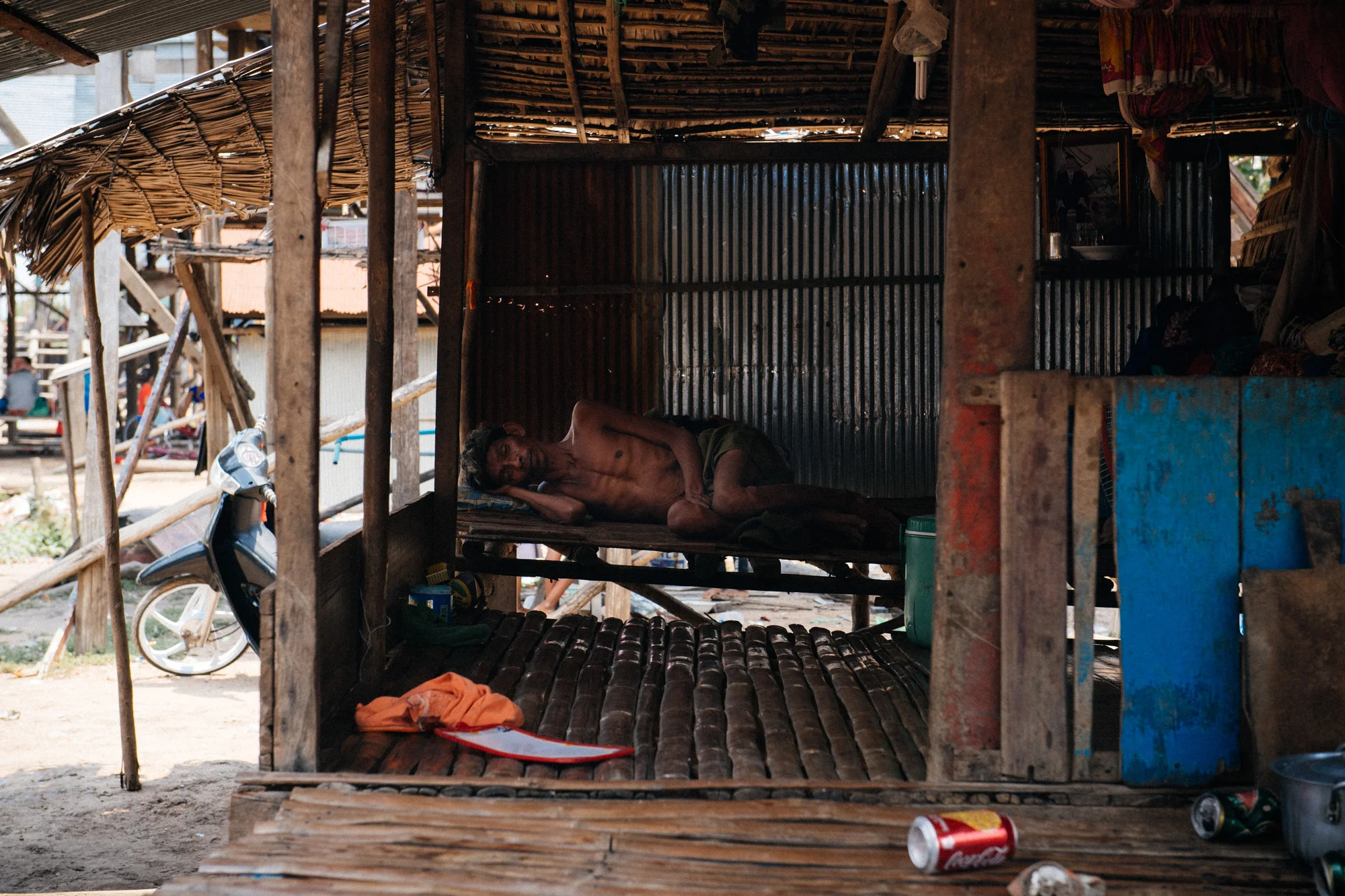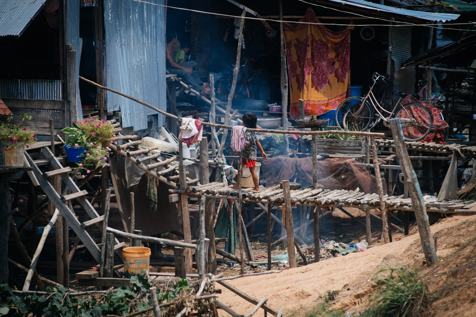 Villages like these are a common site in the countryside of Cambodia. Made with wood and construction leftovers, dozens of people live with no doors and little privacy.
