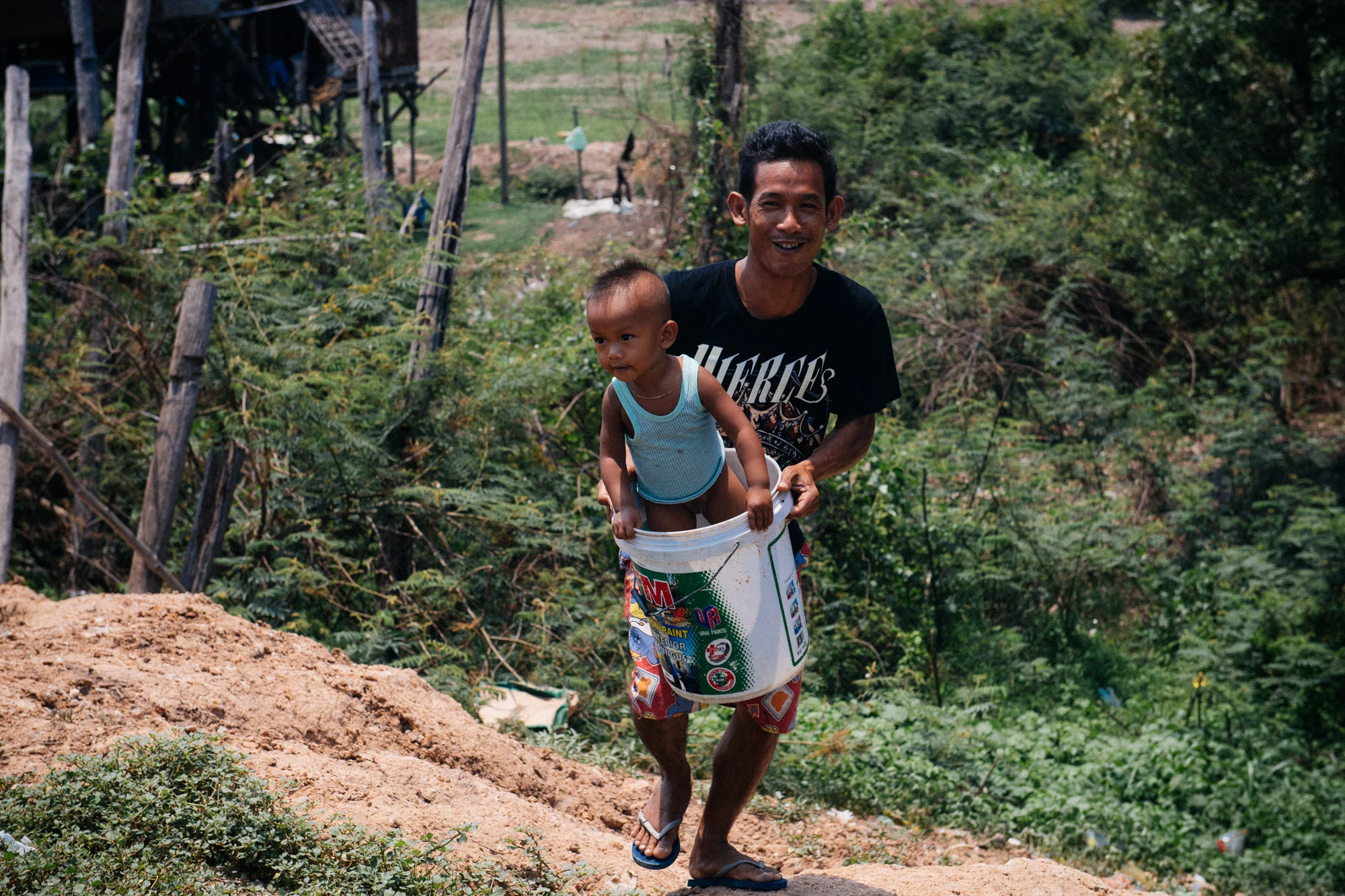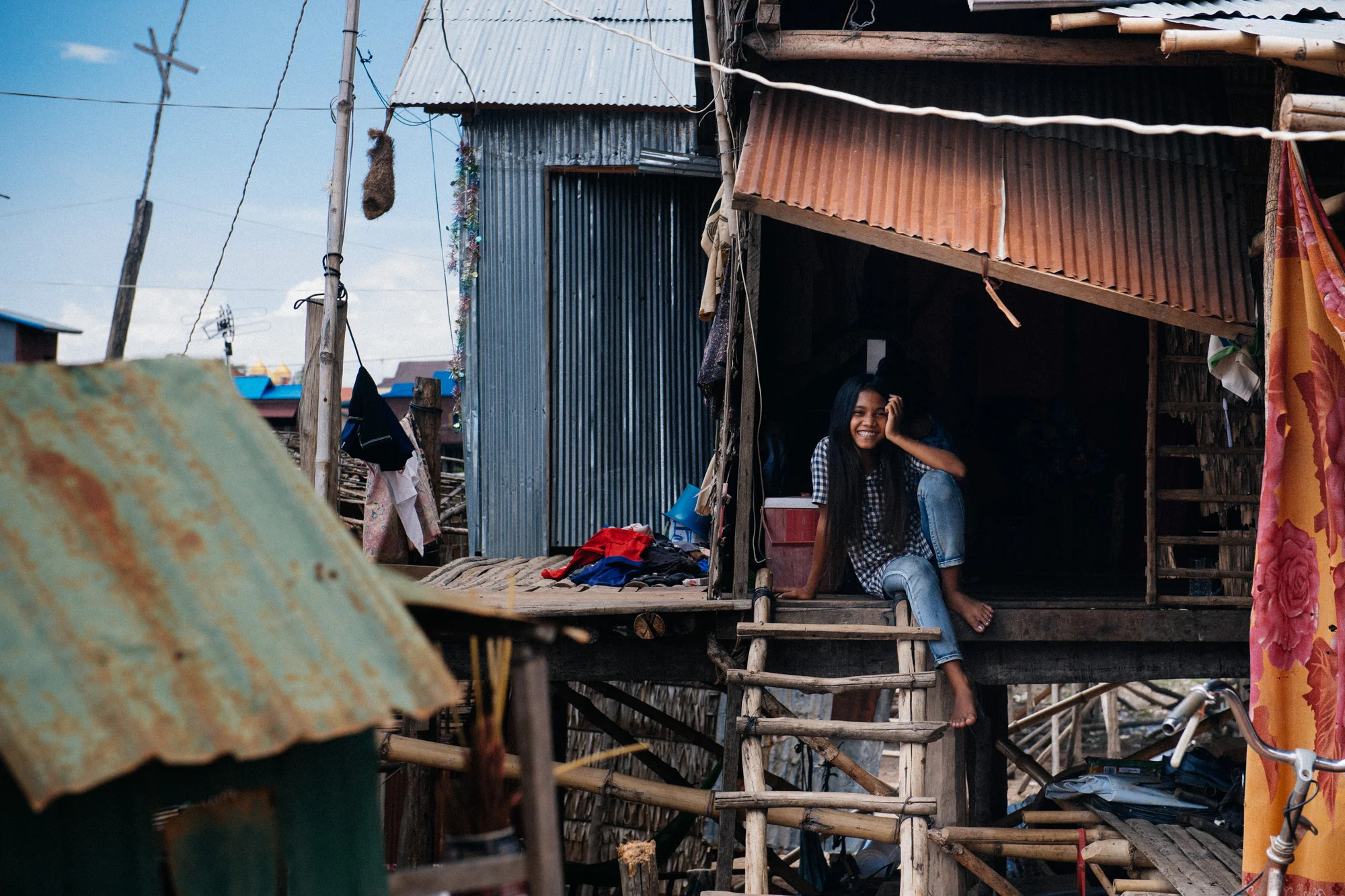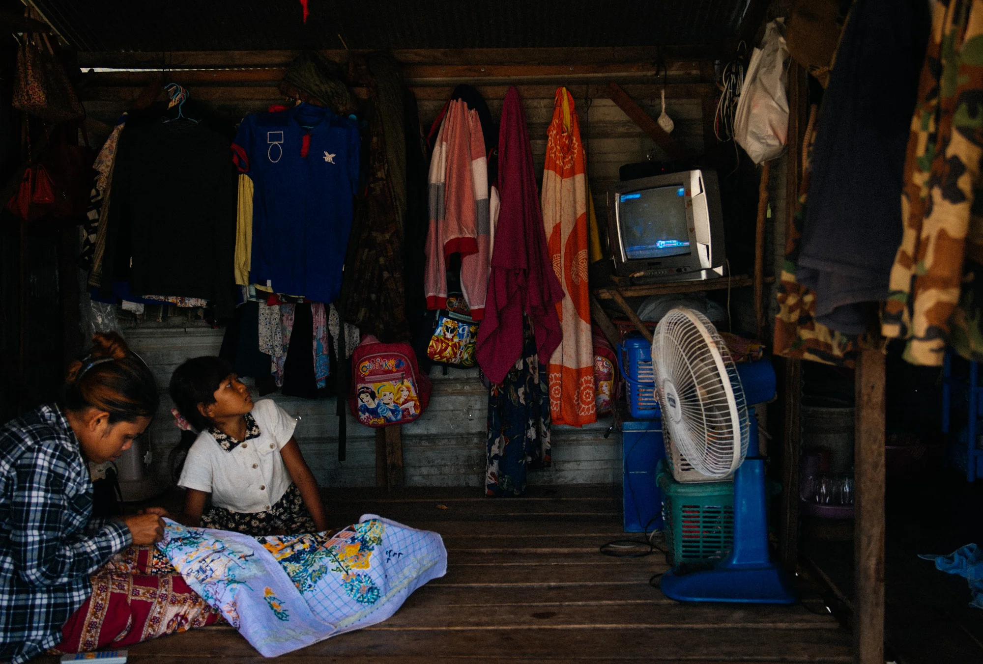 Villages like these are a common site in the countryside of Cambodia. Made with wood and construction leftovers, dozens of people live with no doors and little privacy.